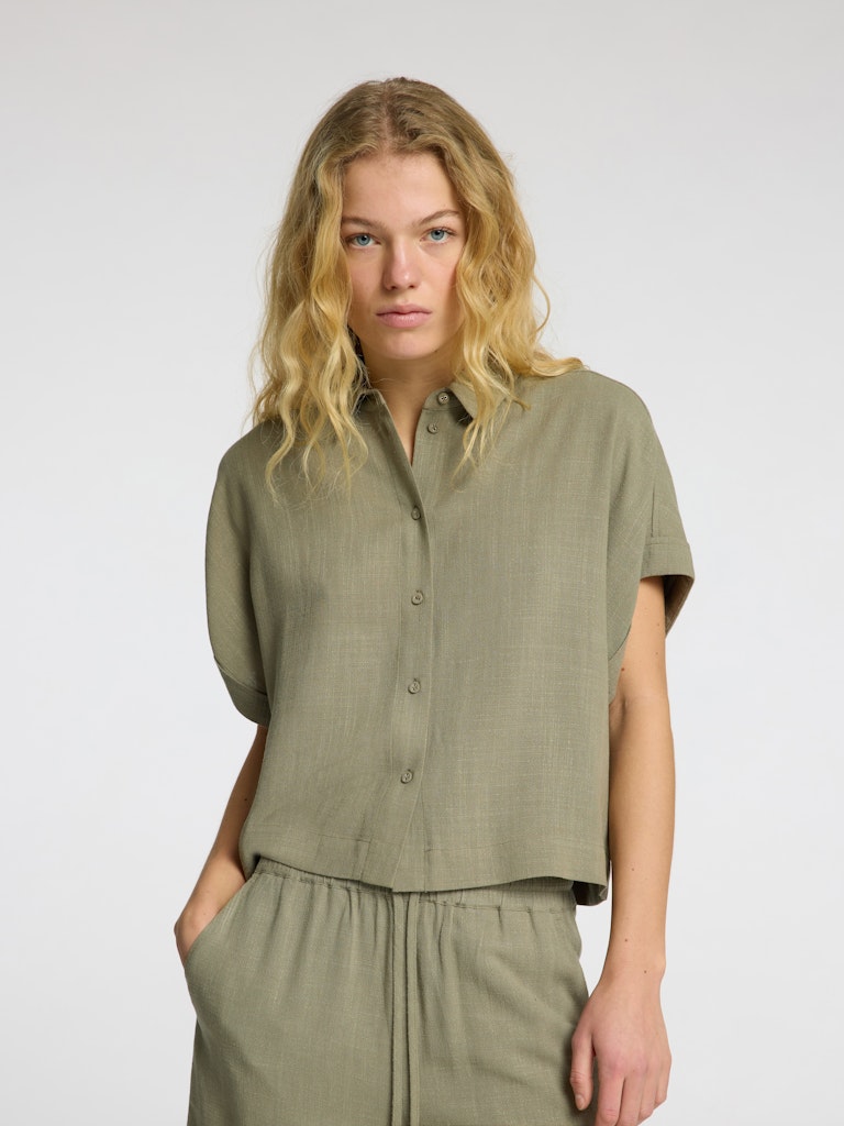 Selected Femme / Damen-Bluse / SLFVIVA SS CROPPED SUN SHIRT NOOS
