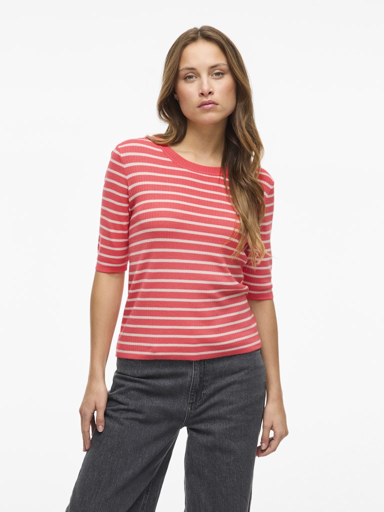 VILA GmbH / Damen-Bluse / VIZICHA O-NECK 2/4 STRIPE KNIT TOP/ Meterialzusammensetzung: