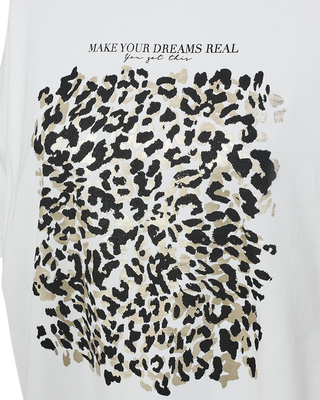 T-Shirt von Freequent aus weichem Material mit großem Frontprint. Das T-Shirt hat einen runden Ausschnitt mit Rippbündchen, Seitenschlitze, einen asymmetrischen Saum sowie kurze Ärmel mit überschnittenen Schultern – Details, die zusammen eine lockere Passform ergeben.