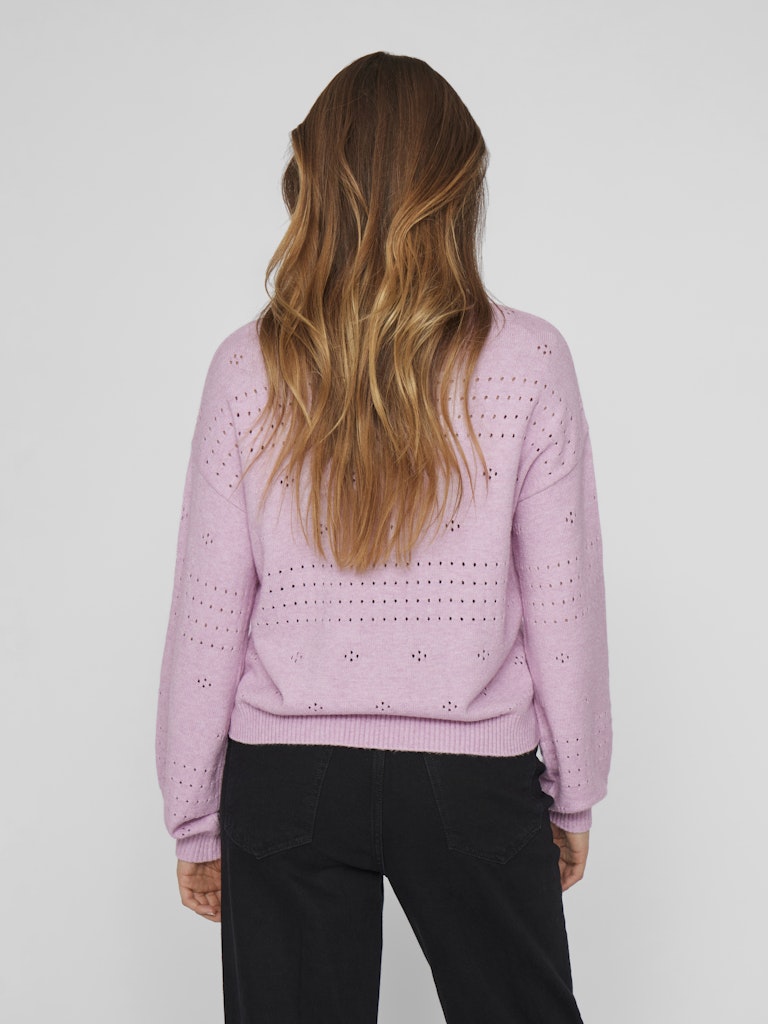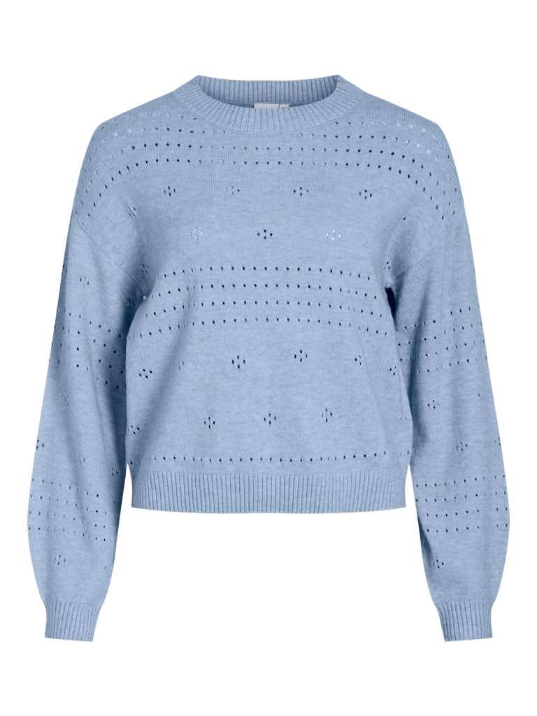 VILA GmbH / Damen-Strick / VIRIL L/S O-NECK POINTELLE KNIT TOP