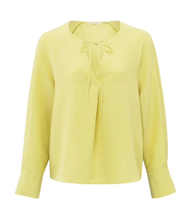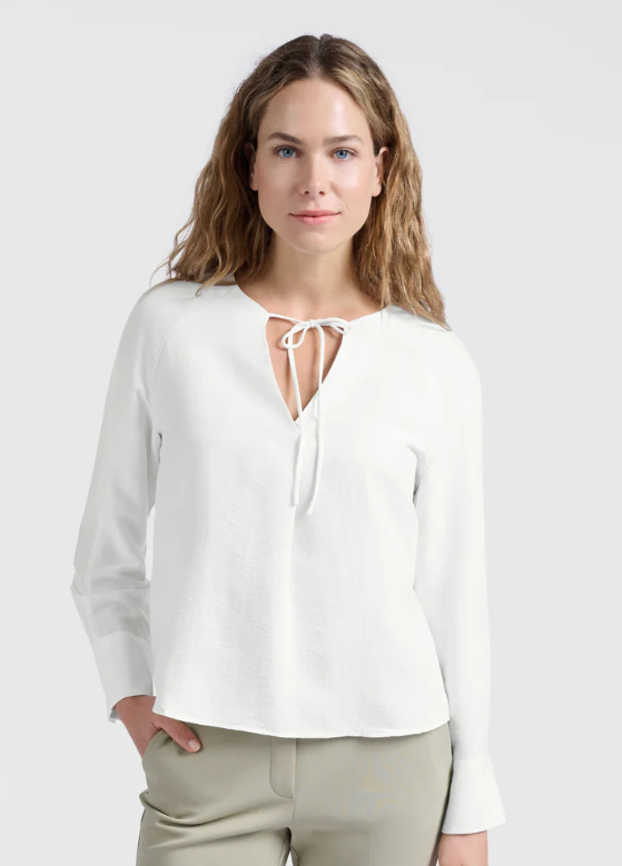 Diese luftige Bluse aus fließendem Stoff begeistert mit einem eleganten V-Ausschnitt mit einer Schleife aus zarten Bändern. Die langen Raglanärmel haben einen Schlitz und Bündchen, die für einen verspielten Look sorgen. Dank ihrer normalen Passform ist die Bluse vielseitig und eignet sich perfekt für jeden Anlass. Sie kann sowohl mit legeren als auch mit schicken Outfits kombiniert werden.