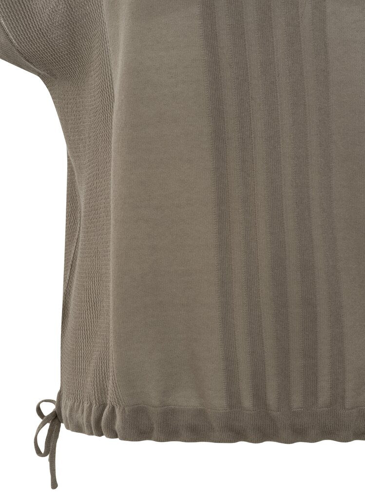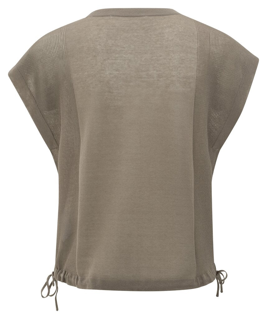 Dieses ärmellose Oberteil aus einer weichen Baumwollmischung besticht durch ein dezentes Linienmuster auf der Vorderseite. Es hat einen Rundhalsausschnitt, eine lockere Passform und Kordelzüge im Saum, die ihm eine lässige Note verleihen. Die gerippten seitlichen Einsätze sorgen für eine edle Oberflächenstruktur. Ein leichtes, stylishes Kleidungsstück für einen entspannten Sommerlook.