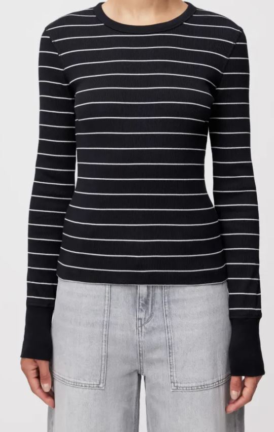 NURIT ist ein schmales Longsleeve in Tight Fit mit einem runden Halsausschnitt. Baumwoll-Rippe überzeugt durch ihre feine Struktur, hohe Elastizität und angenehmen Tragekomfort. Die gerippte Oberfläche sorgt für Flexibilität und Passform, ideal für körpernahe Styles mit natürlichem Look.