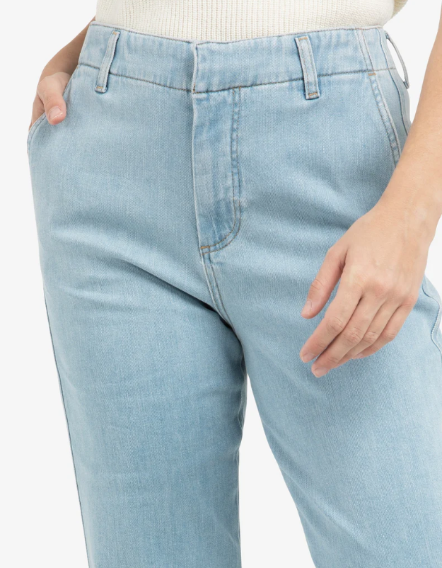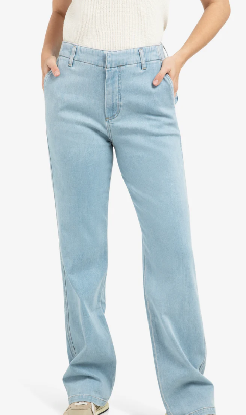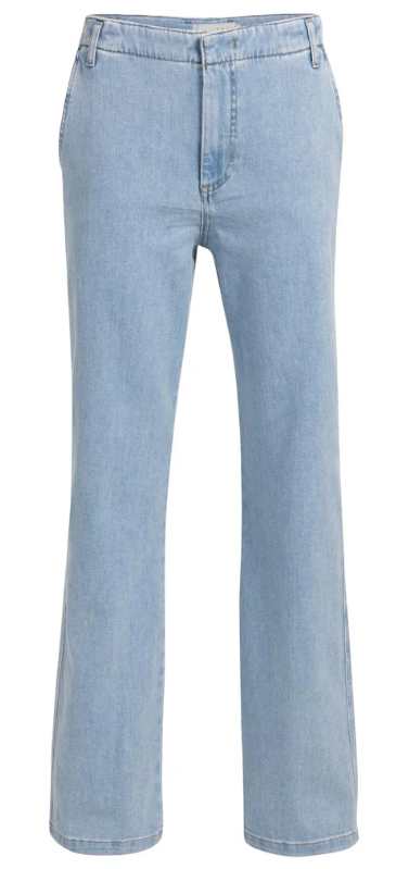 Dieser Denim ist im Chino-Stil gestaltet, was einen ordentlichen, femininen Look verleiht. Die Hosen haben eine hohe Taille, eine normale Passform und elegante Details wie Paspeltaschen am Rücken. Gefertigt in weicher Jeansqualität mit Seitentaschen vorne und Gürtelschlaufen an der Taille. Ein zeitloses Stück, das mühelos zu stylen ist.