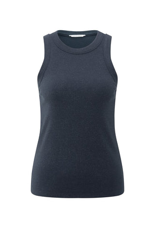 Dieses bequeme Singlet ist aus Rippstrick gefertigt und mit weichem Lurex-Glitzer versehen, der für einen dezenten Schimmer sorgt. Es hat einen Rundhalsausschnitt und eine figurbetonte Passform, die sich wunderbar an den Körper schmiegt. Dank der dehnbaren Qualität eignet es sich perfekt für lässige und mehrlagige Looks.
