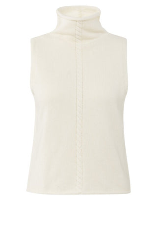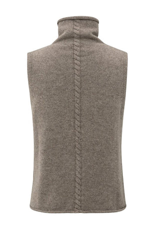 Dieser ärmellose Pullover hat einen hohen Halsausschnitt und eine taillierte Passform. Ein vertikales Zopfmuster auf Vorder- und Rückseite verleiht ihm einen raffinierten Touch. Gestrickt aus einem weichen und bequemen Stoff mit glatter Oberfläche. Perfekt über einer Bluse oder allein getragen für einen gemütlichen und dennoch eleganten Look.