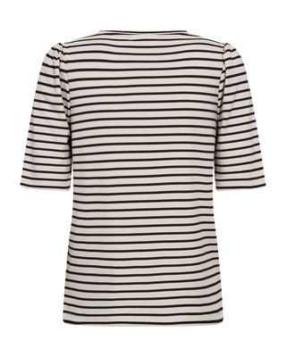 T-Shirt von Freequent aus weichem, geripptem Material mit Streifen. Das T-Shirt hat eine schlichte Silhouette mit rundem Ausschnitt, regulärer Passform und kurzen Puffärmeln.
