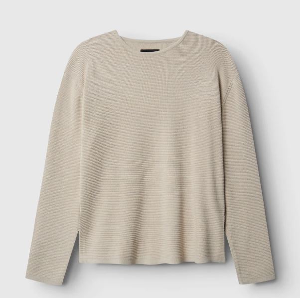 Eine zeitgenössische Auffassung eines klassischen Pullovers, die verschiedene Stricktechniken kombiniert.