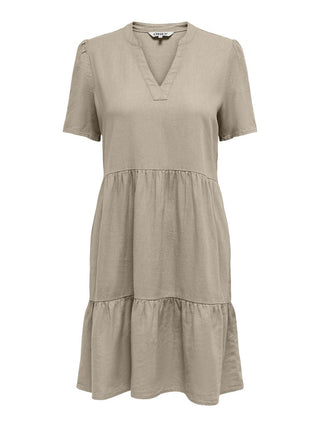 Only / Damen-Kleid / ONLTIRI-CARO S/S V-NECK LIN DRESS C