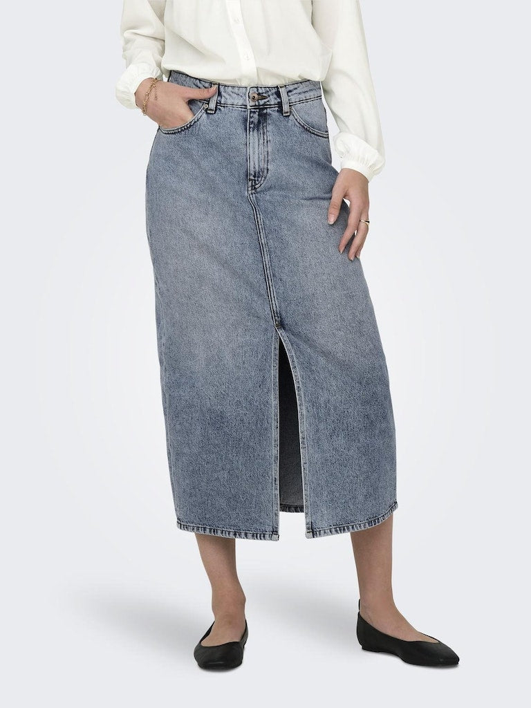 Only / Damen-Rock / ONLAYOE HW FRONT SLIT MIDI DNM SKIR