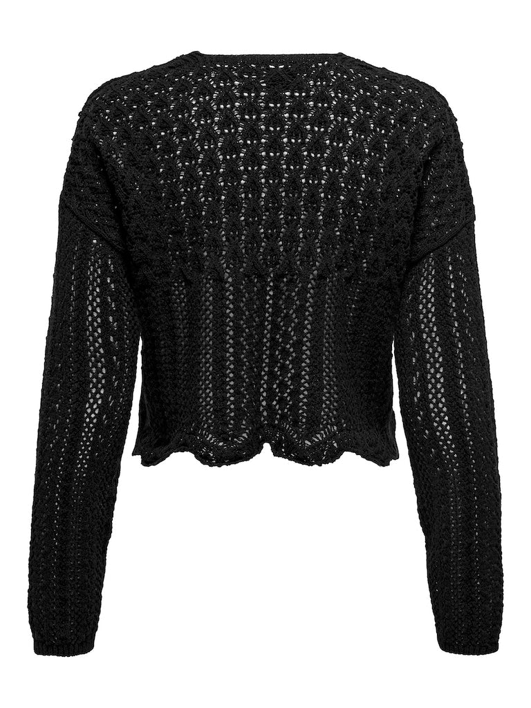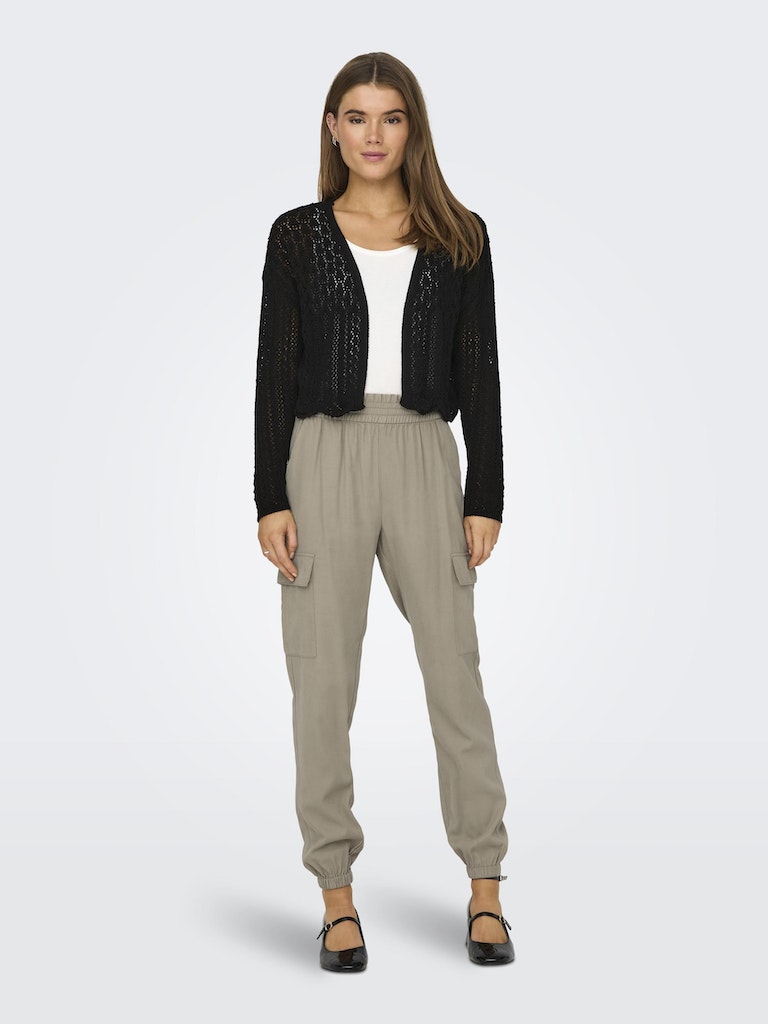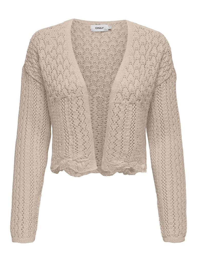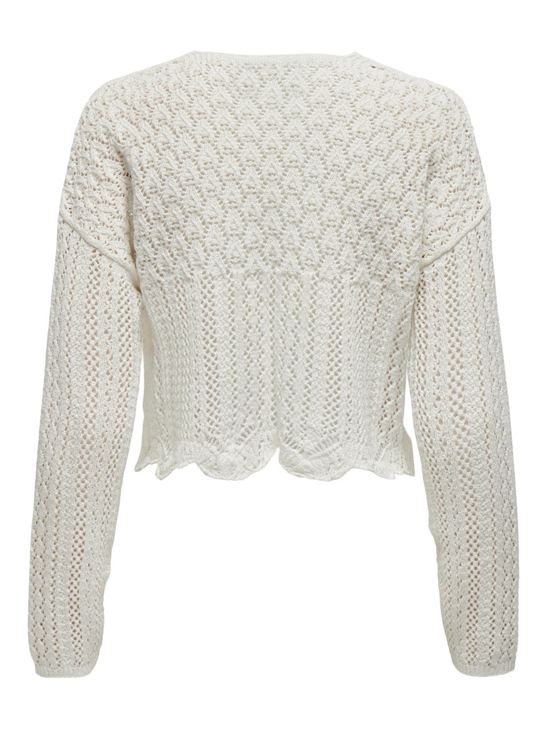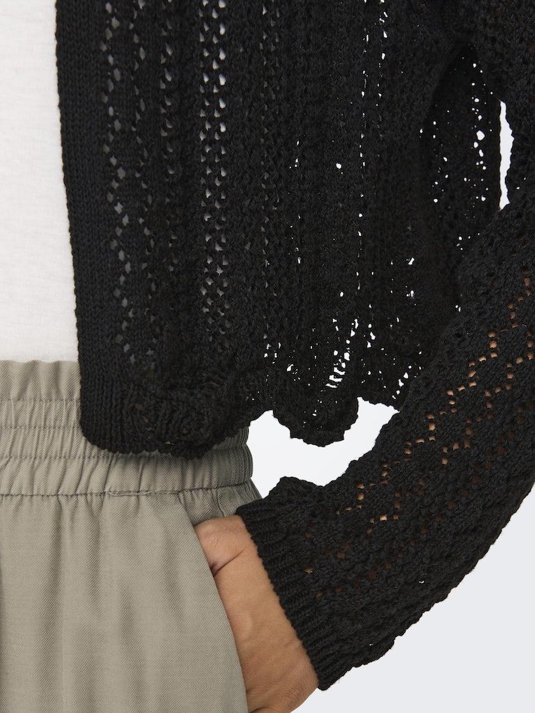 Vervollständige deinen Look mit einem zeitlosen, femininen Strickteil, das weich und warm ist. - Produkttyp : Strickjacke - Neck : V-Ausschnitt - Ärmel : 7/8 Arm - Ärmel : Tief angesetzte Schulter - Länge/Größe : Kurz - Details : Muschelsaum - Passform : Normal geschnitten