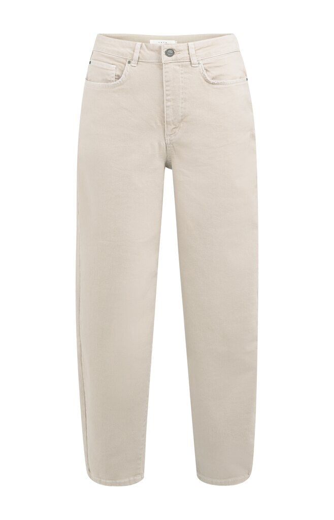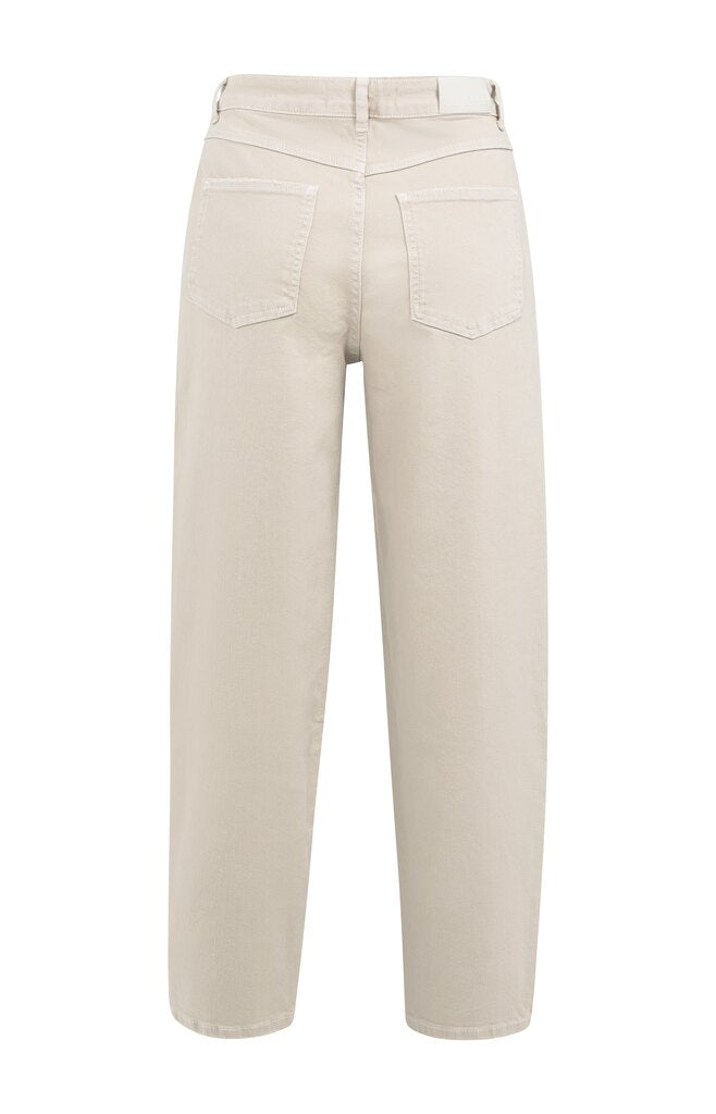 Diese bequeme Jeans aus weichem beigefarbenem Denim hat eine lockere Passform und einen hohen Bund. Sie begeistert mit einem klassischen Fünf-Taschen-Design und einem markanten V-förmigen Detail hinten am Bund. Das gerade Bein verleiht der Jeans eine entspannte Note.